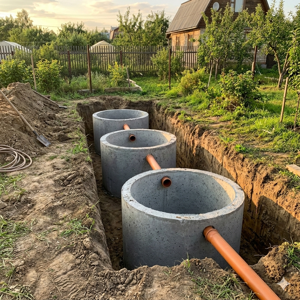 Профессиональный монтаж септиков из бетонных колец и пластиковых емкостей